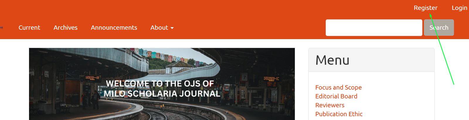 Buka salah satu jurnal berbasis OJS, contoh: https://miloscholariajournal.com/miloscholaria. Kamu bisa menggunakan jurnal kampusmu atau jurnal lain yang sesuai dengan bidang artikel kamu.